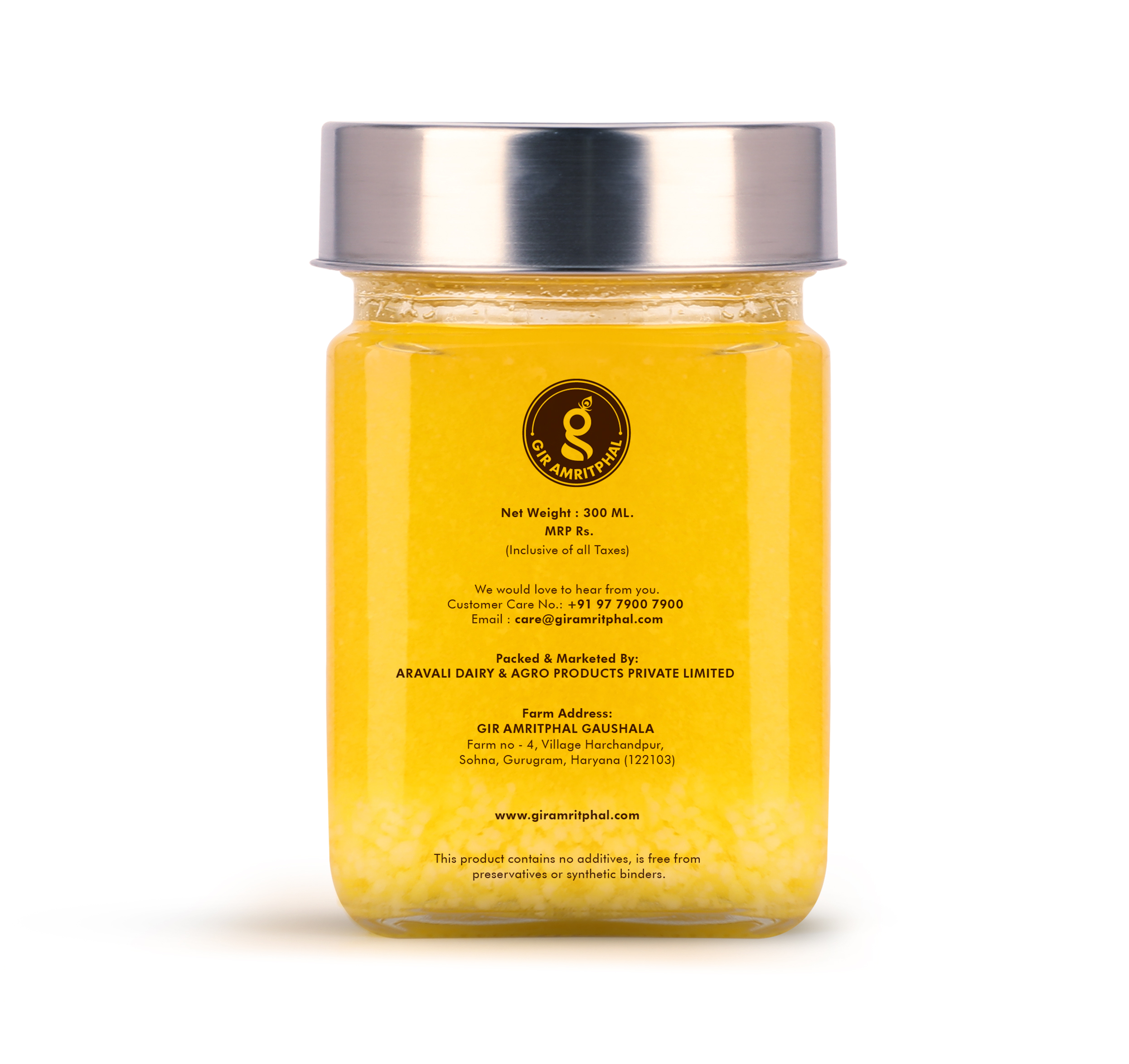 • FROM FARM TO FAMILY. Gir Amritphal A2 cow ghee contains no additives, no binders, no preservatives and no added colors. Our A2 desi Gir cow ghee is gluten-free and is beneficial for gut health as it is easy to digest. It is safe for most people with lactose sensitivities.